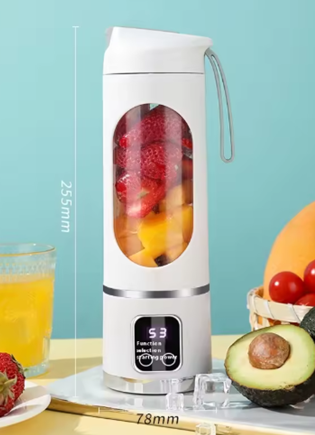 Este copo de sumo elétrico portátil é feito de plástico de grau alimentar e a?o inoxidável, garantindo durabilidade e seguran?a. Tem uma capacidade de 450 ml, suporta carregamento por USB e vem equipado com um potente motor de 12.000 rota??es por minuto, capaz de extrair sumo de frutas de forma eficiente.